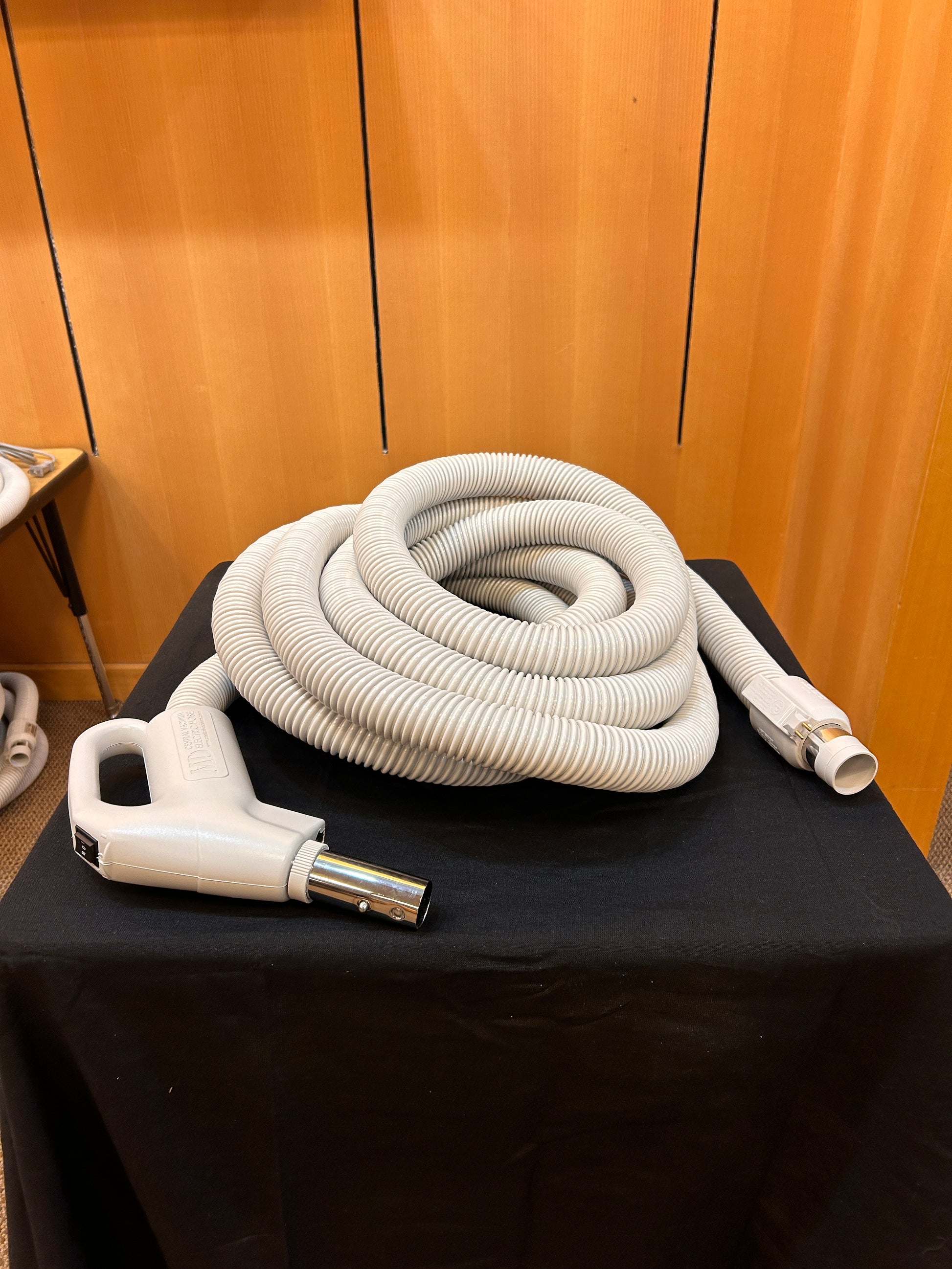 Hose works with industry standard 1.5 inch central vacuum inlets.