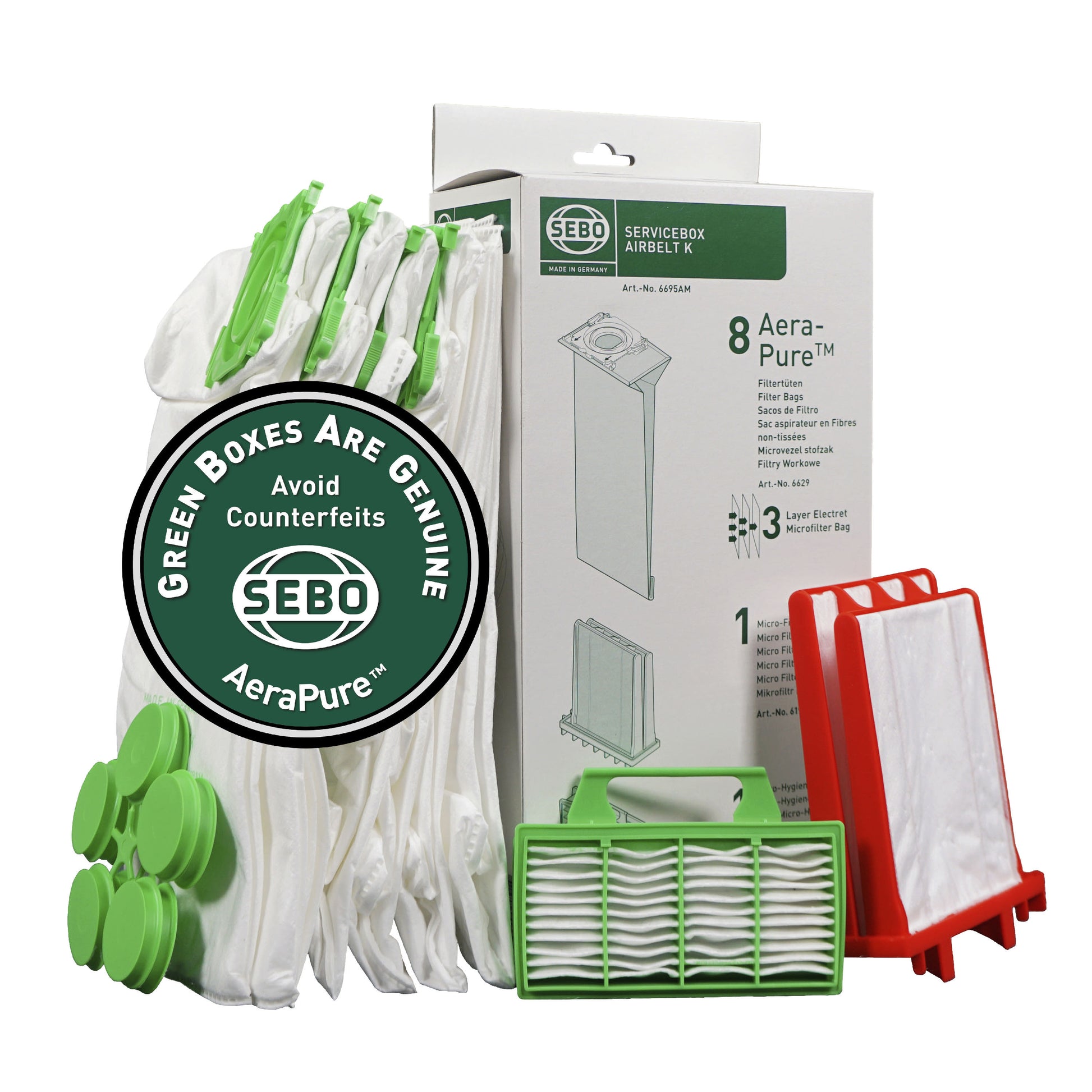 SEBO AUTOMATIC SERVICE BOX AIRBELT K 6695AM (8-3 Layer Filtration Bags)